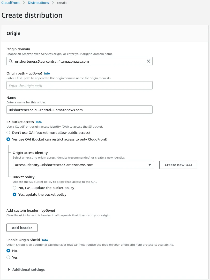 };With this done, we can prepare our Cloudfront Distribution,