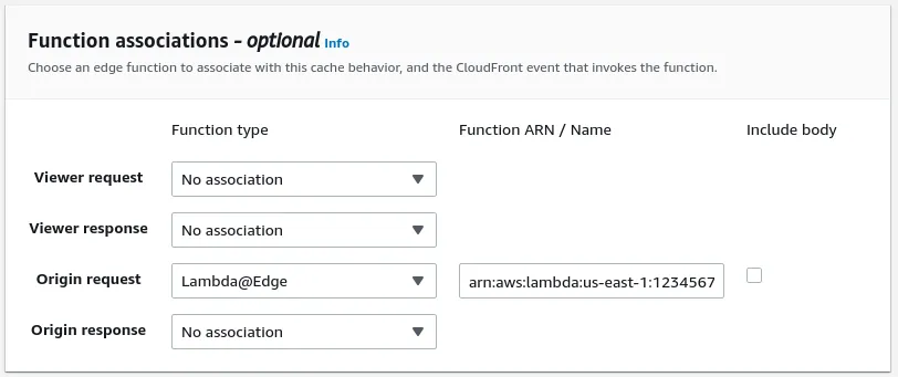 The event interesting to us is the Origin request event. At this stage Cloudfront doesn’t know what to serve and requires a new mapping of the request to an target filename in our S3 bucket.