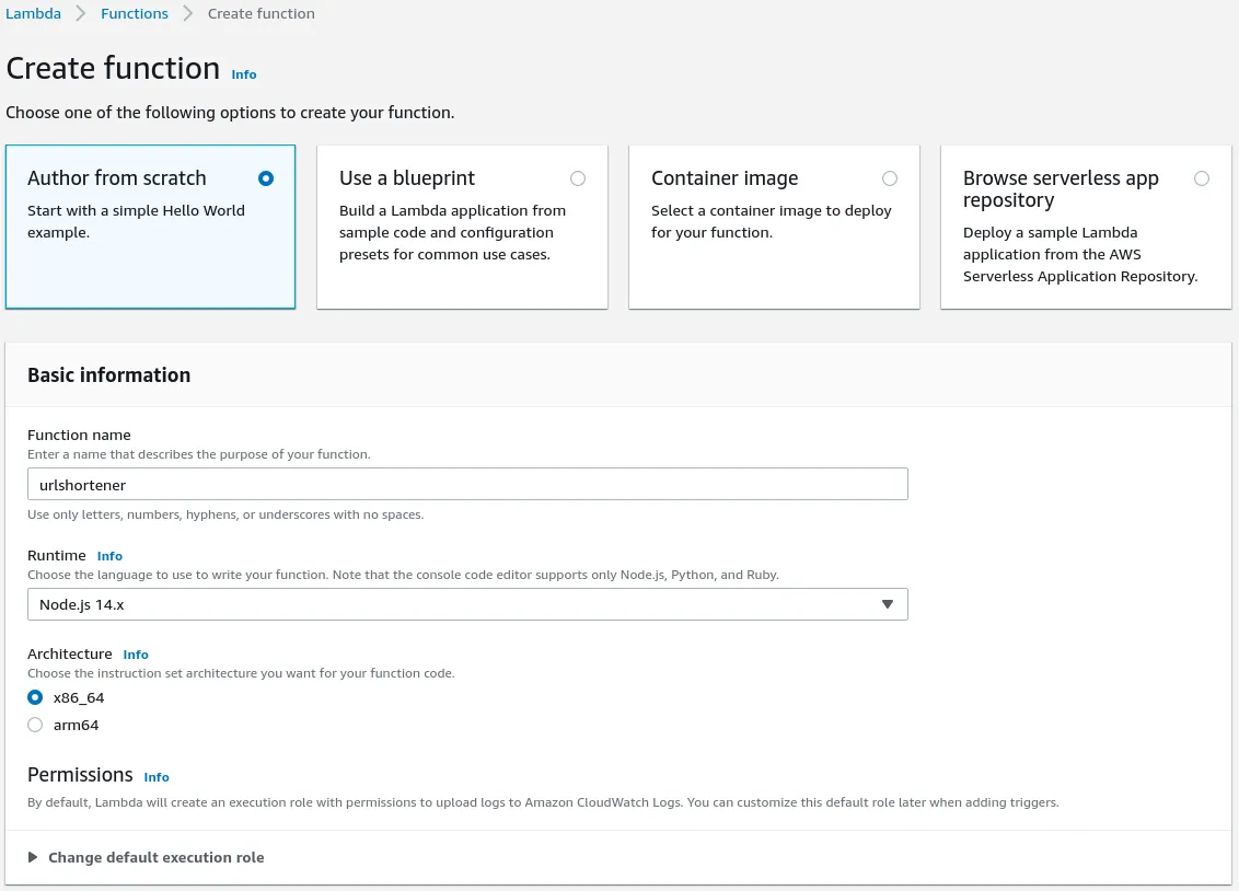 Now the only main thing left for the shortener is, to select our Lambda function we have created before. The “Function ARN/Name” can be found in the Lambda function details and just needs to be copied.