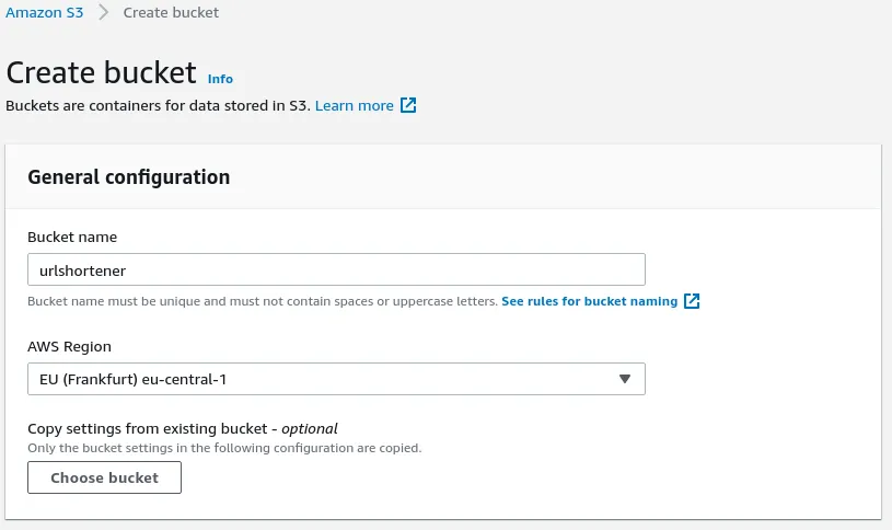 We don’t need to change anything else in the default options of the bucket settings. Just pick a name an region that suits you.